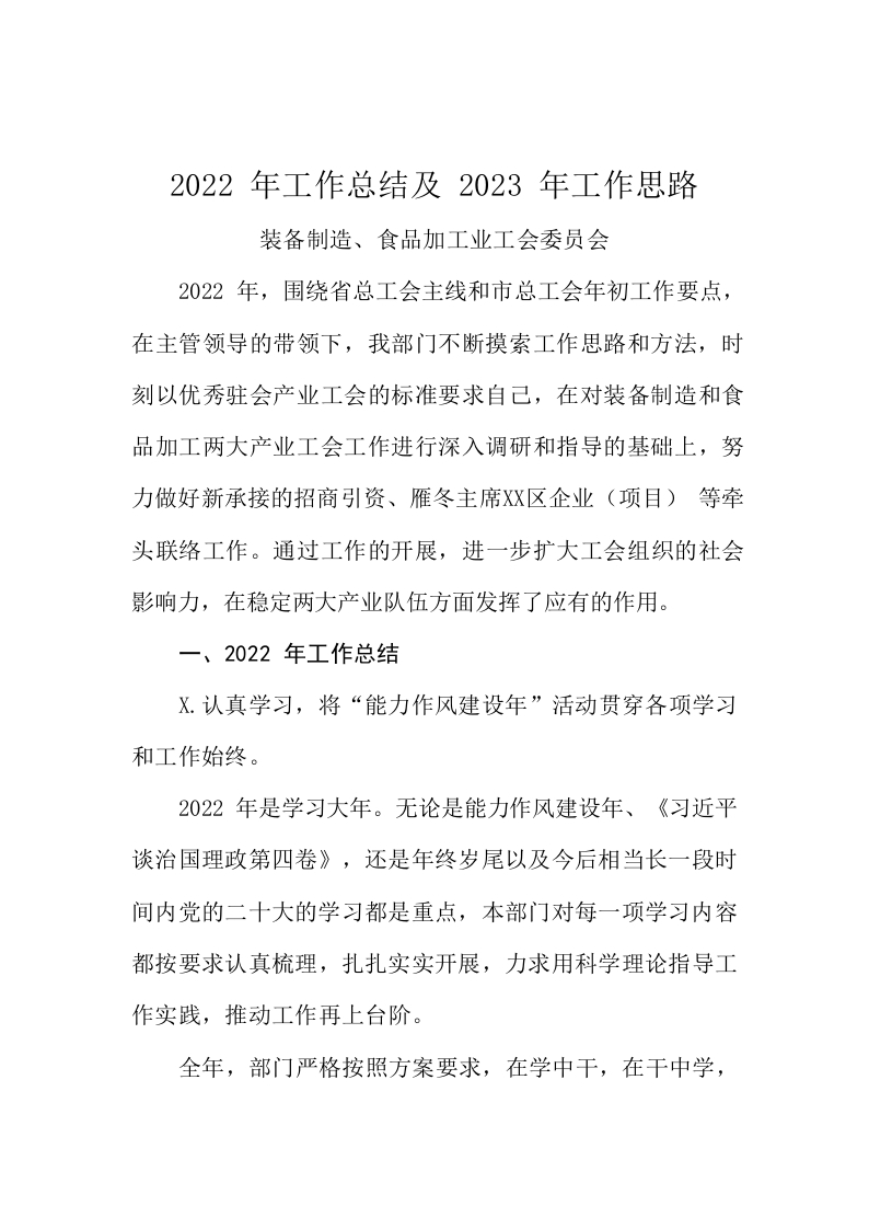 / 装、食工委会2022年工作总结和2023年工作思路