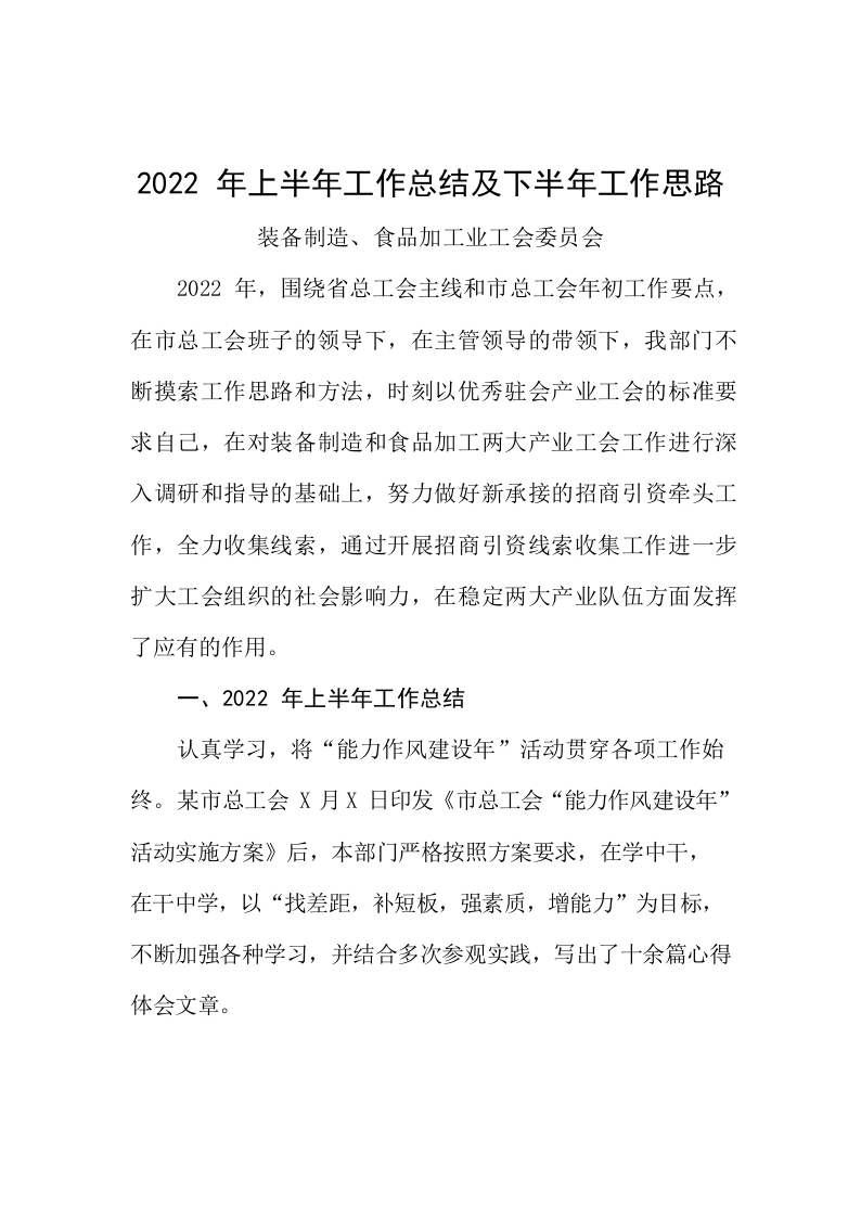 / 装、食工委会2022年上半年工作总结和下半年工作思路