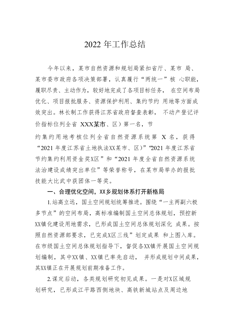 / 自然资源和规划局2022年工作总结(20221117)