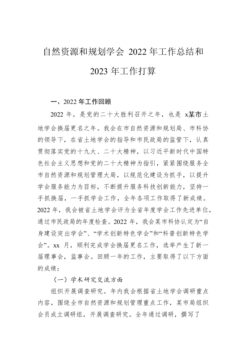 / 自然资源和规划学会2022年工作总结和2023年工作打算