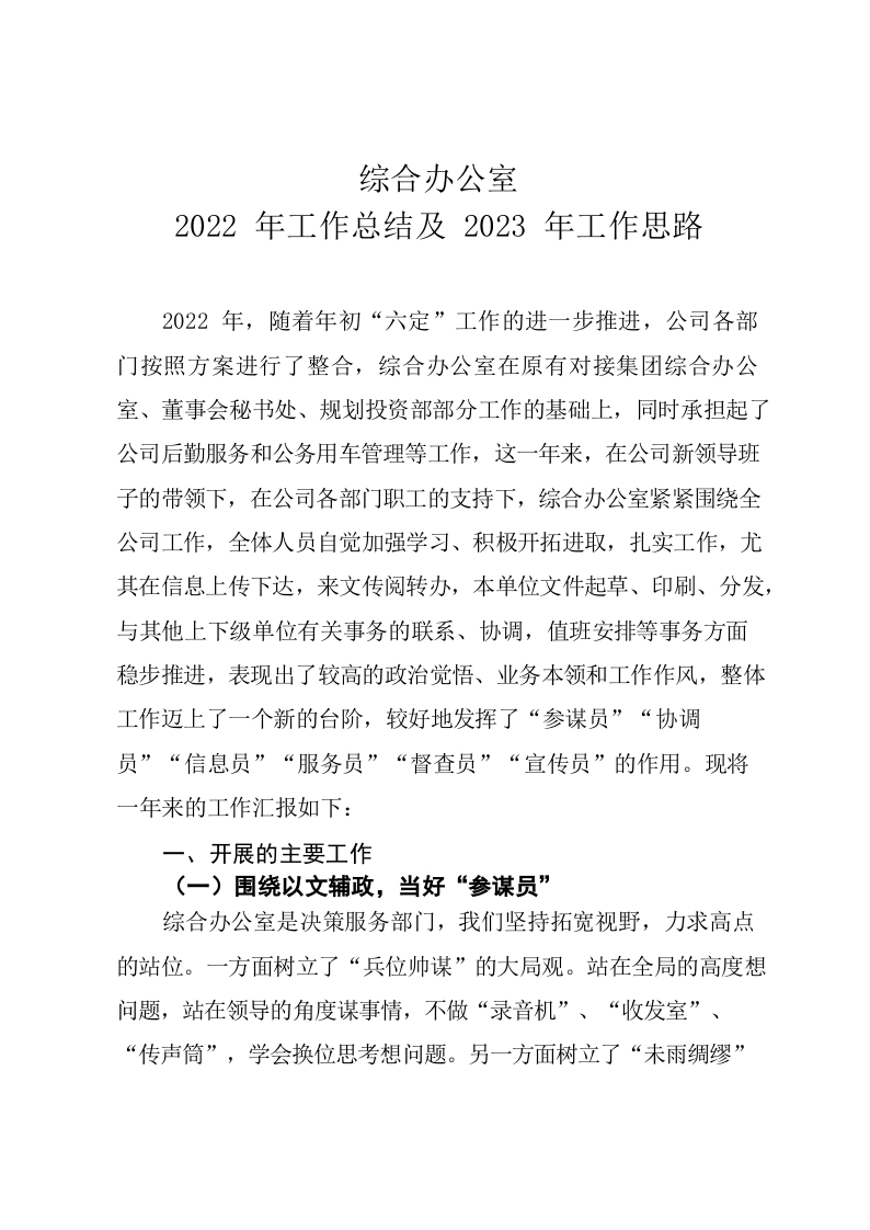 / 综合办公室2022年工作总结及2023年工作思路
