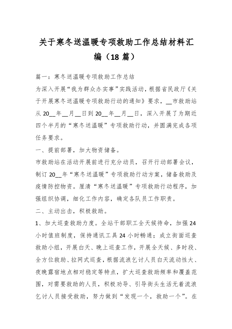 / (18篇)关于寒冬送温暖专项救助工作总结材料汇编
