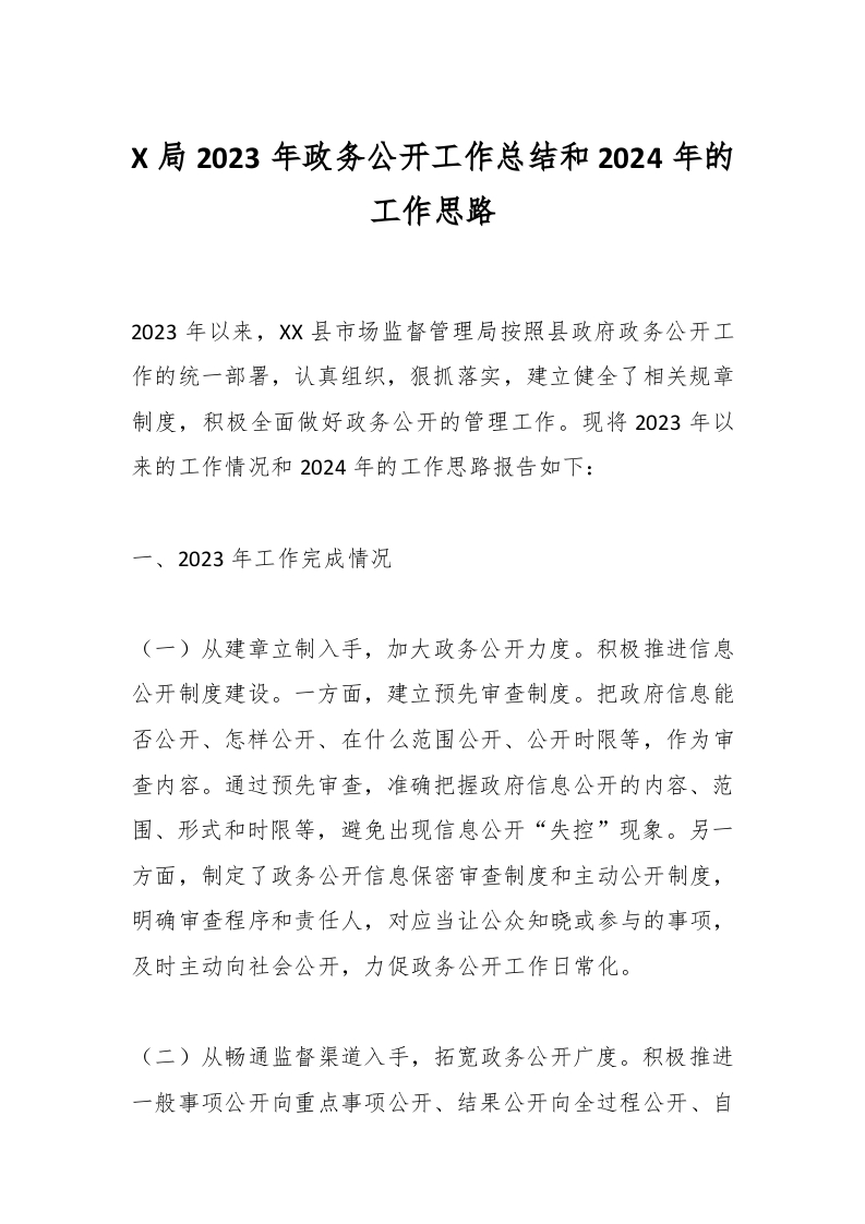 / X局2023年政务公开工作总结和2024年的工作思路
