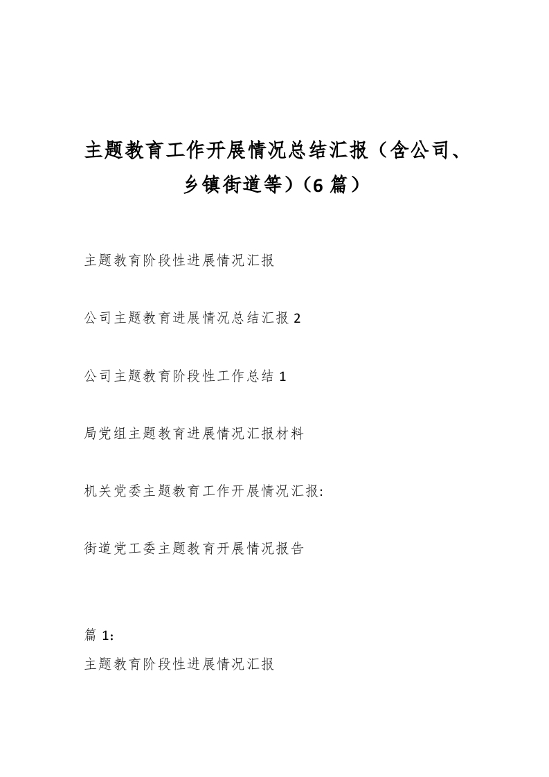 / (6篇)主题教育工作开展情况总结汇报(含公司、乡镇街道等)