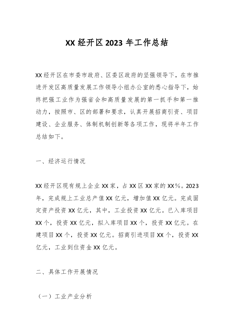 / XX经开区2023年工作总结