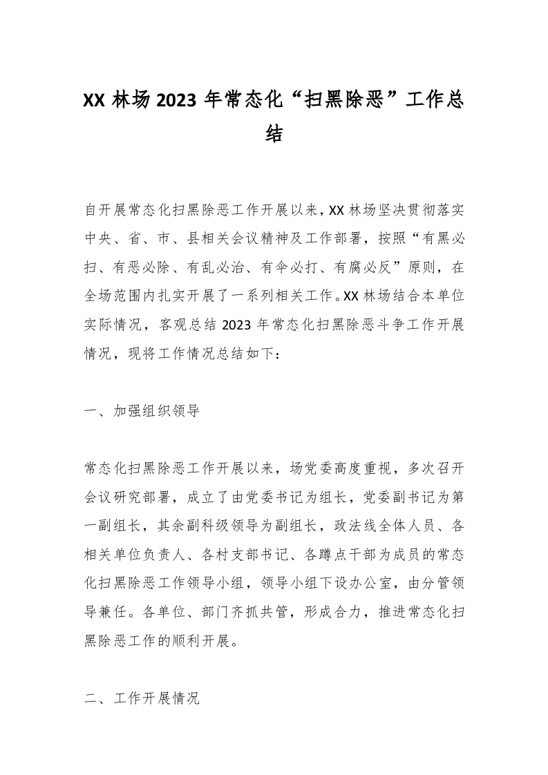 / XX林场2023年常态化“扫黑除恶”工作总结