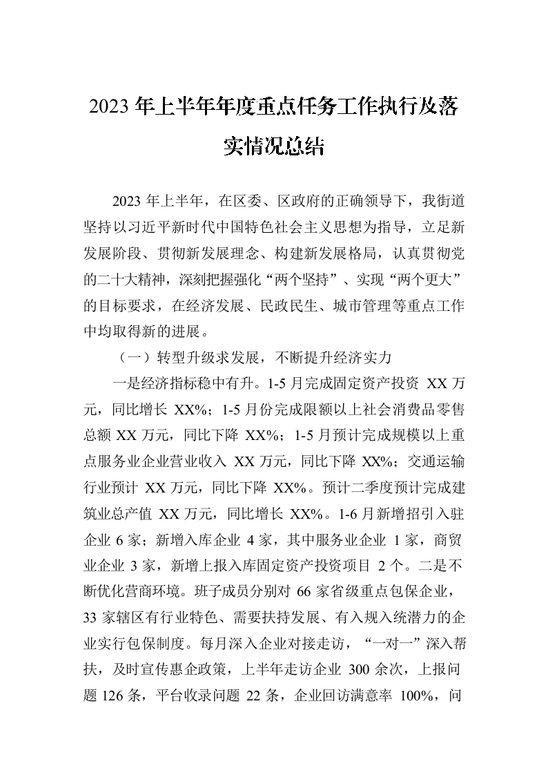 / 2023年上半年年度重点任务工作执行及落实情况总结(20230707)