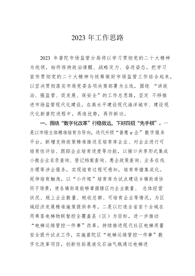 2023年工作思路