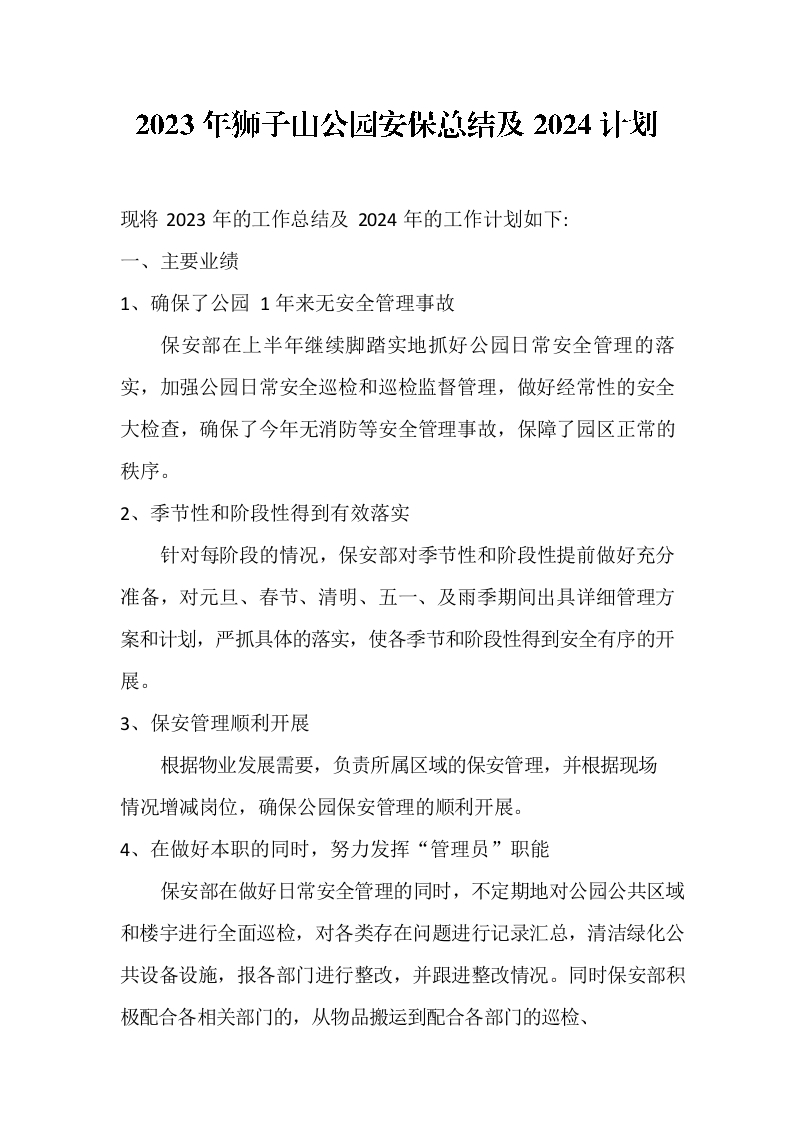 / 2023年狮子山公园安保年终总结及2024计划