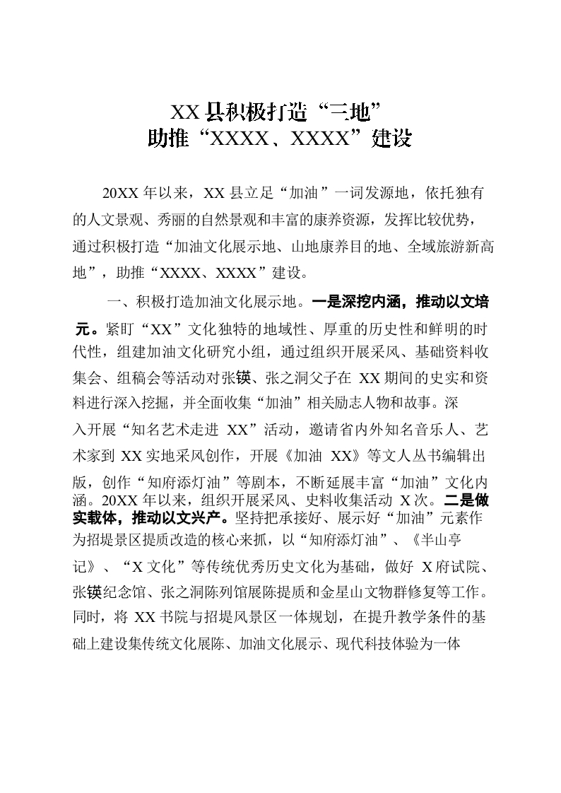 / XX县积极打造“三地”助推“XXXX、XXXX”建设