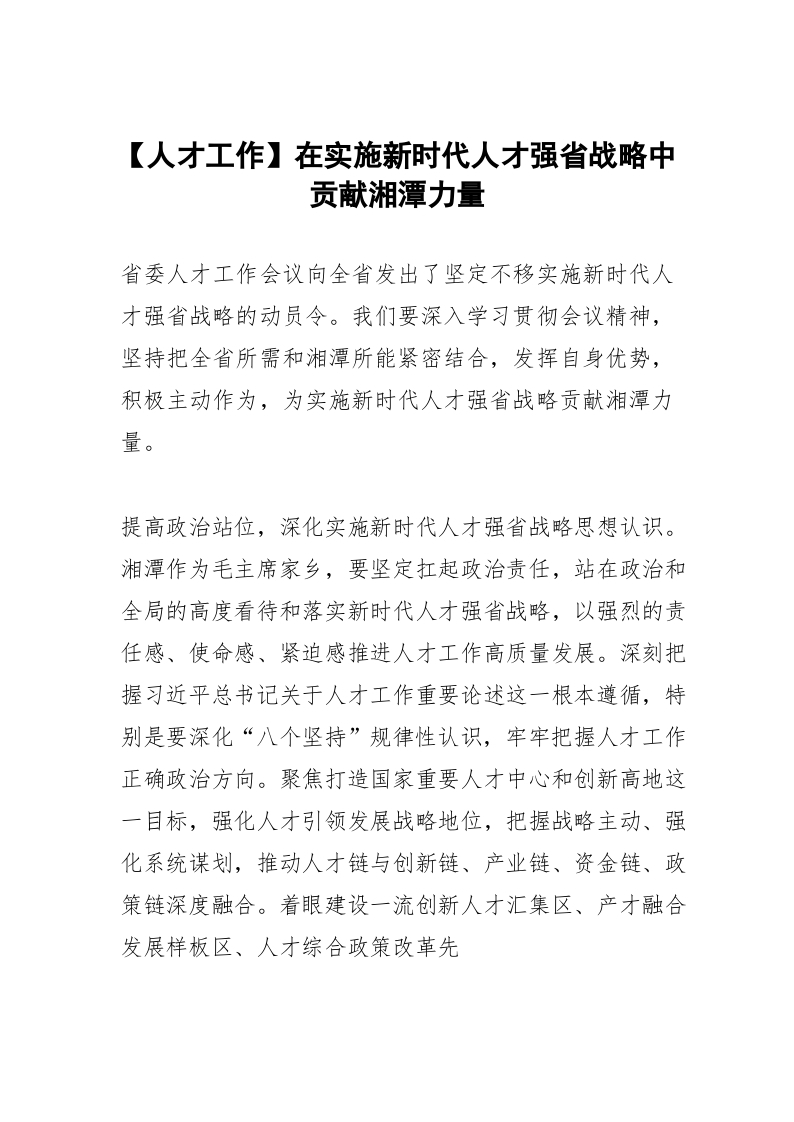 / 【人才工作】在实施新时代人才强省战略中贡献湘潭力量