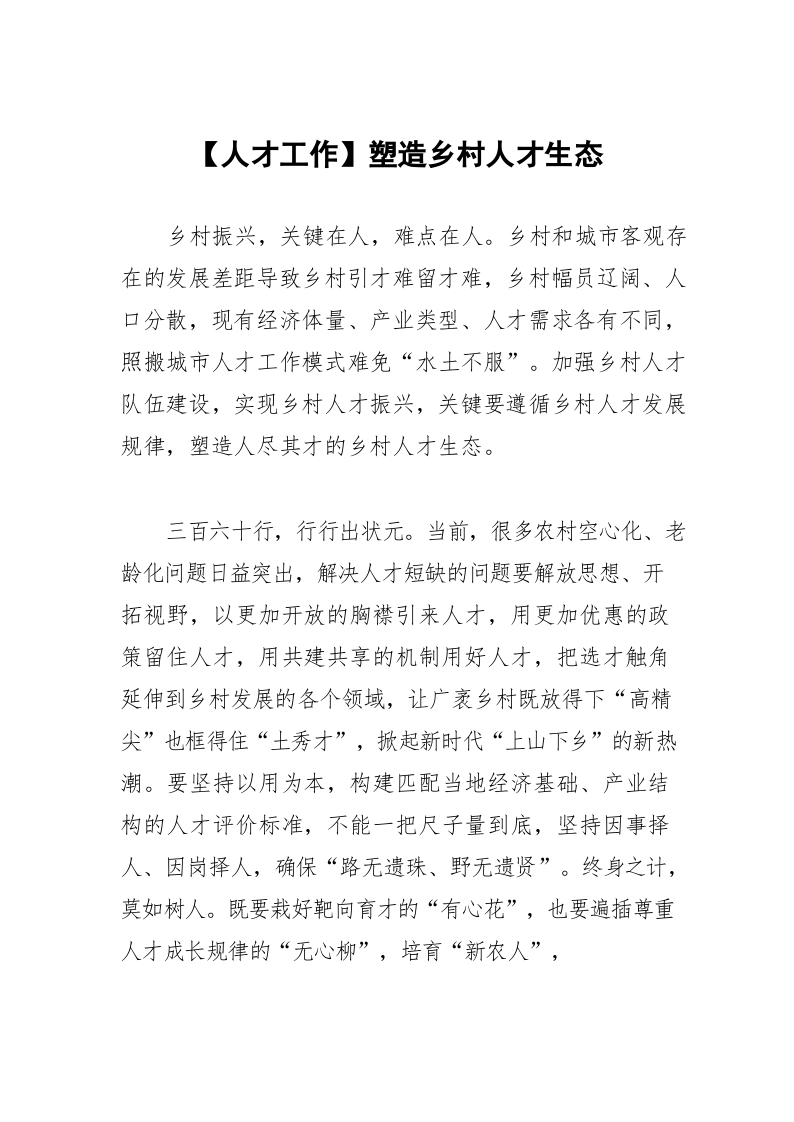 / 【人才工作】塑造乡村人才生态