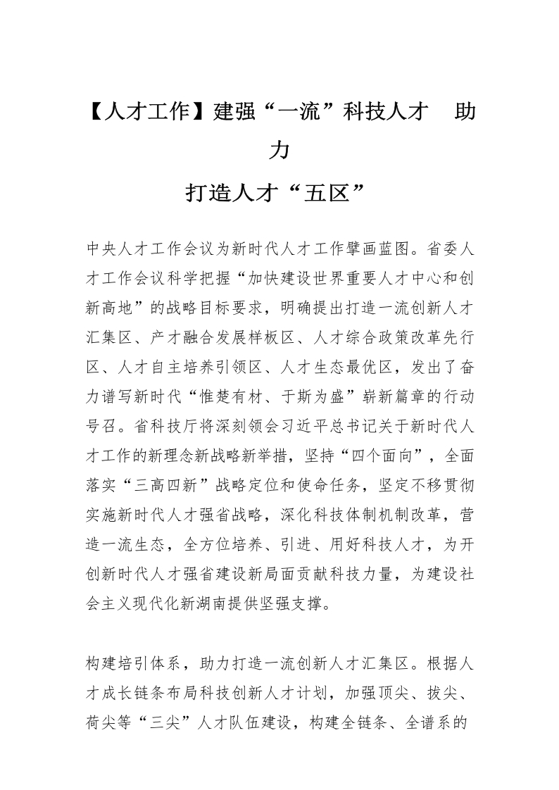 / 【人才工作】建强“一流”科技人才 助力打造人才“五区”