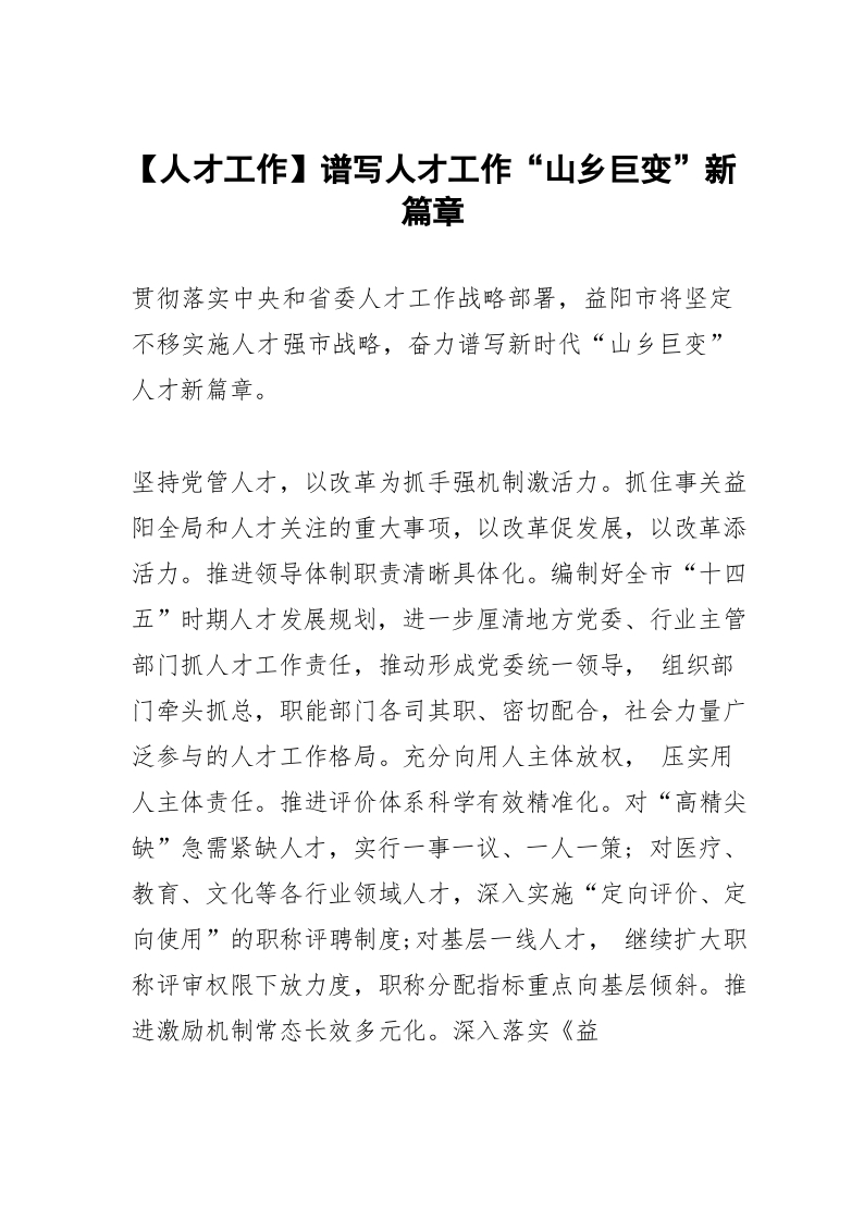 / 【人才工作】谱写人才工作“山乡巨变”新篇章