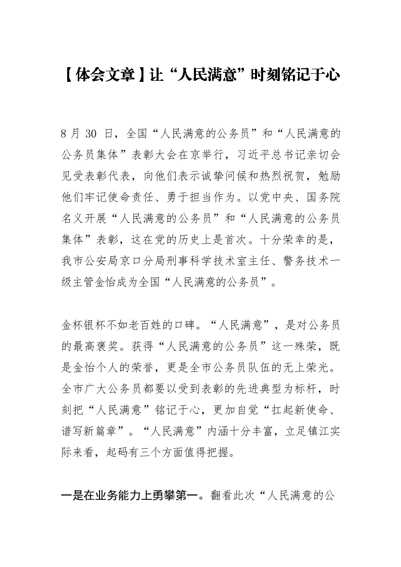 【体会文章】让“人民满意”时刻铭记于心