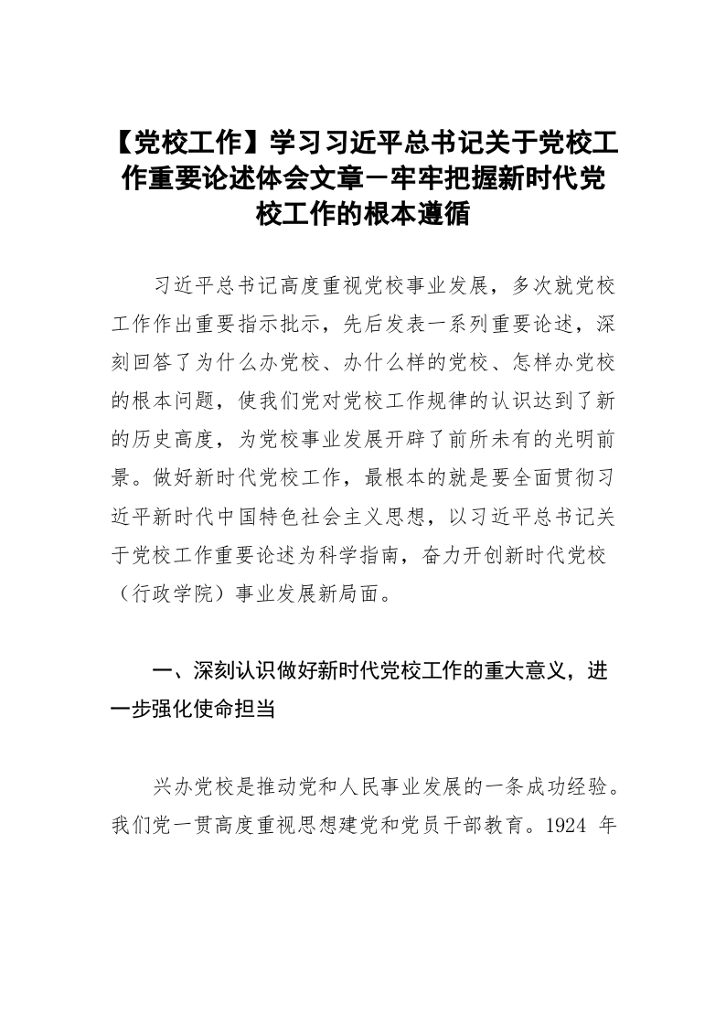 / 【党校工作】学习习近平总书记关于党校工作重要论述体会文章-牢牢把握新时代党校工作的根本遵循