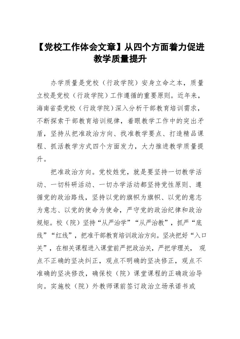 / 【党校工作体会文章】从四个方面着力促进教学质量提升