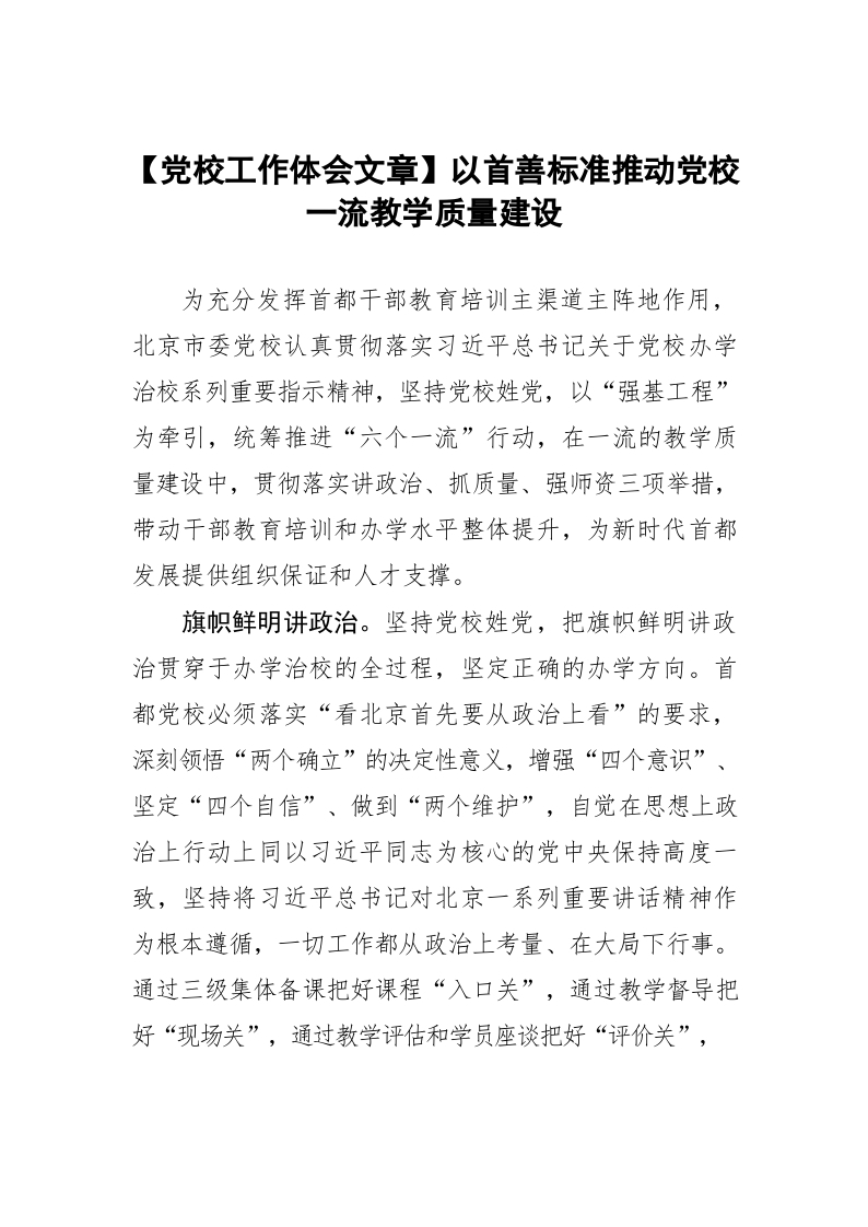 / 【党校工作体会文章】以首善标准推动党校一流教学质量建设