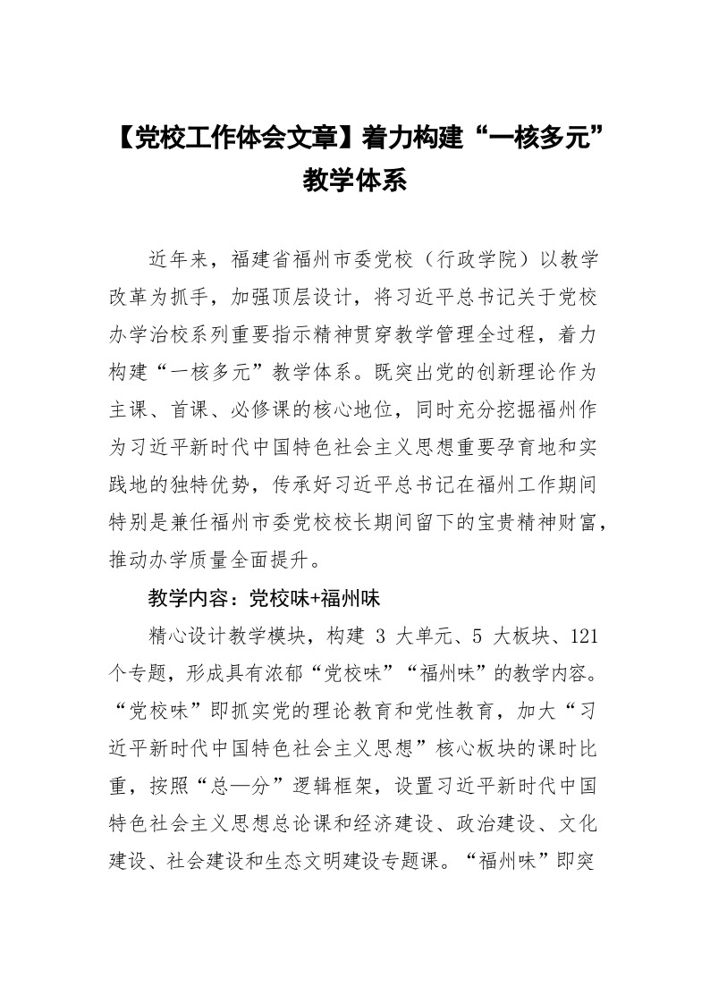 / 【党校工作体会文章】着力构建“一核多元”教学体系