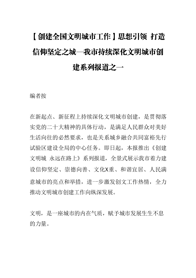/ 【创建全国文明城市工作】思想引领 打造信仰坚定之城—我市持续深化文明城市创建系列报道之一