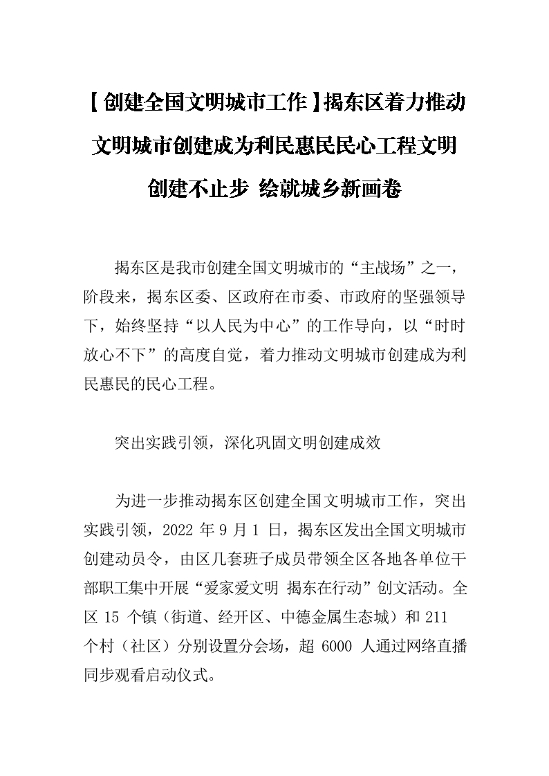 / 【创建全国文明城市工作】揭东区着力推动文明城市创建成为利民惠民民心工程文明创建不止步 绘就城乡新画卷