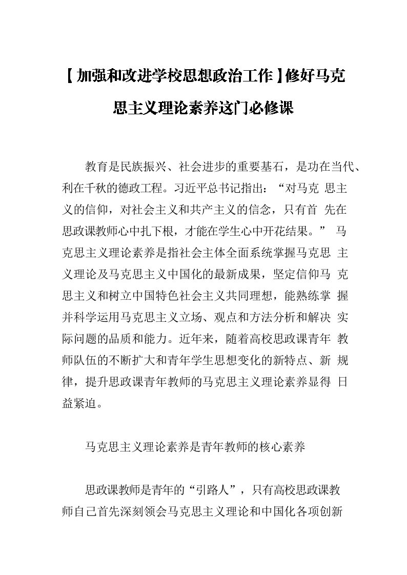 / 【加强和改进学校思想政治工作】修好马克思主义理论素养这门必修课