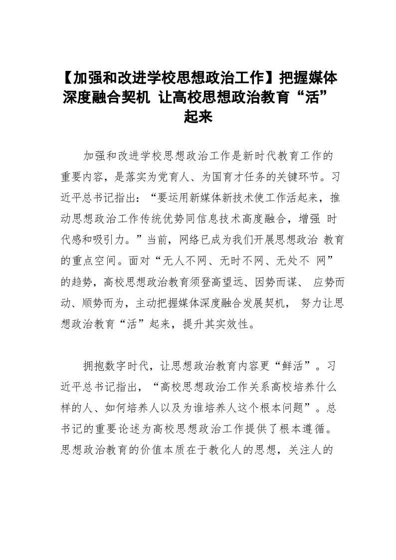 / 【加强和改进学校思想政治工作】把握媒体深度融合契机 让高校思想政治教育“活”起来