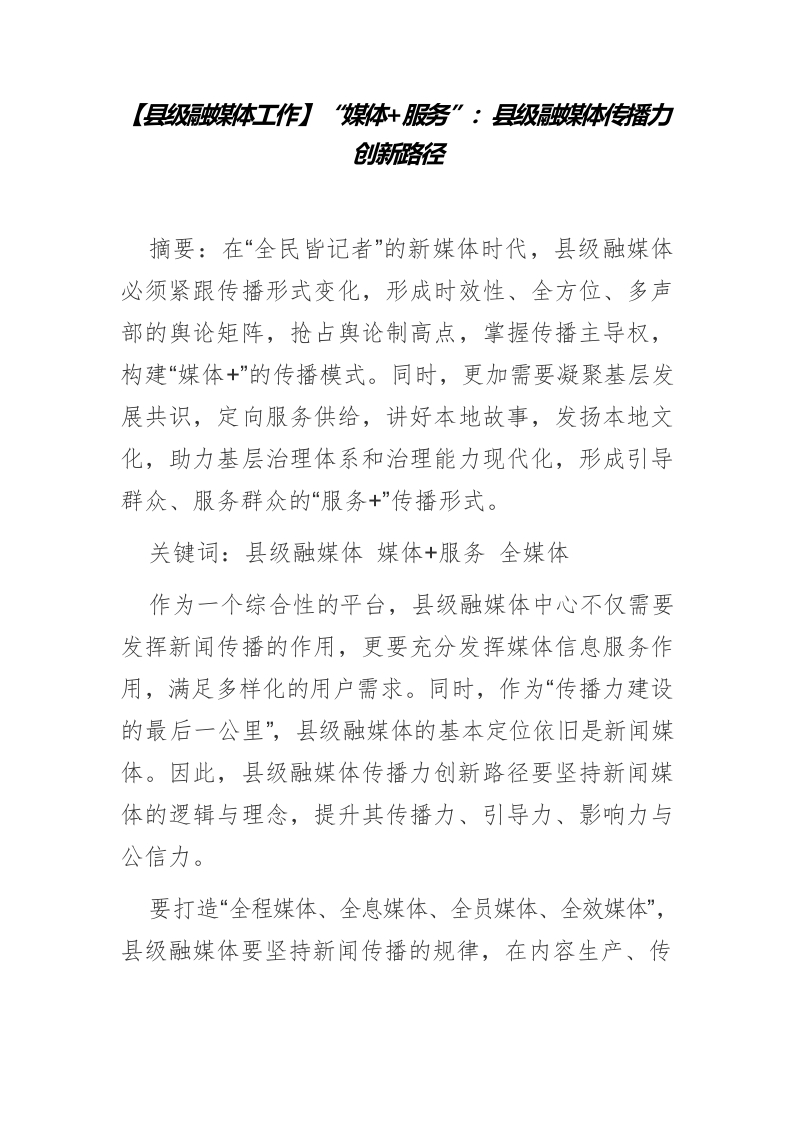 / 【县级融媒体工作】“媒体服务”:县级融媒体传播力创新路径
