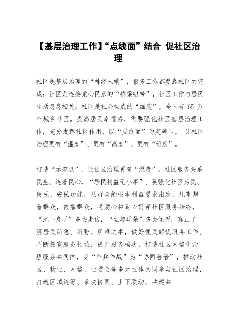 【基层治理工作】“点线面”结合 促社区治理