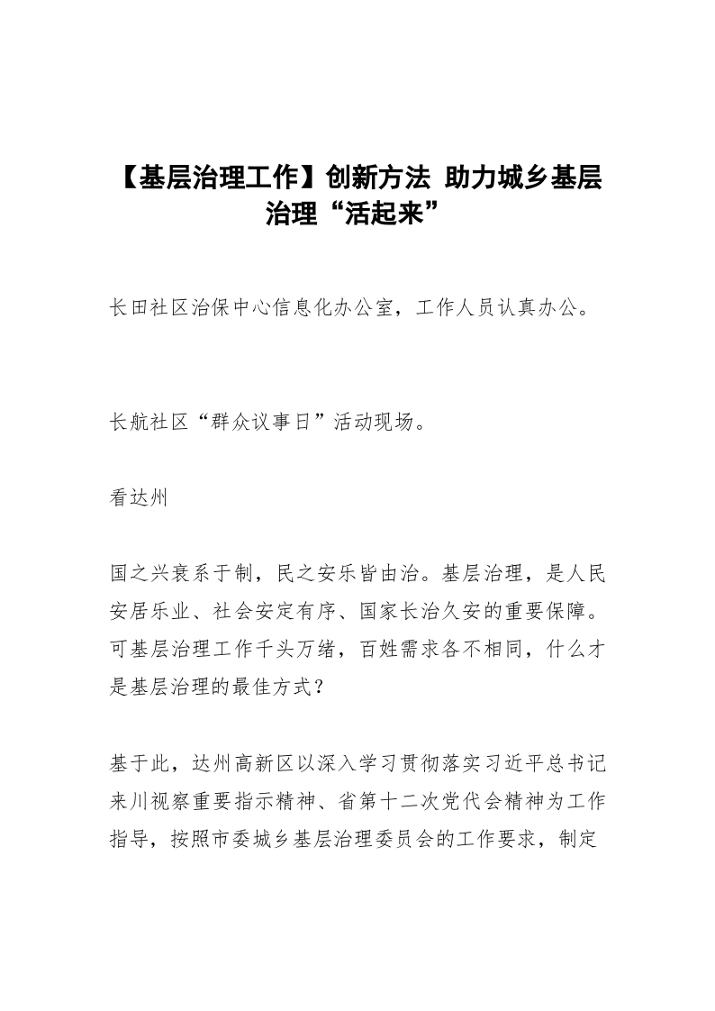 / 【基层治理工作】创新方法 助力城乡基层治理“活起来”