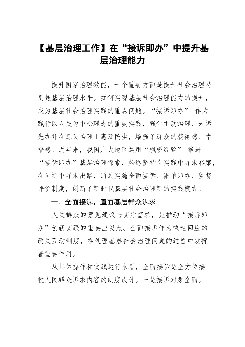 / 【基层治理工作】在“接诉即办”中提升基层治理能力