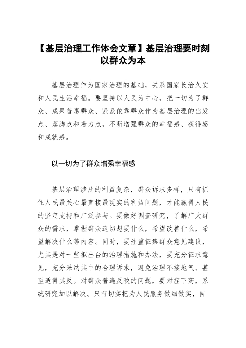 / 【基层治理工作体会文章】基层治理要时刻以群众为本