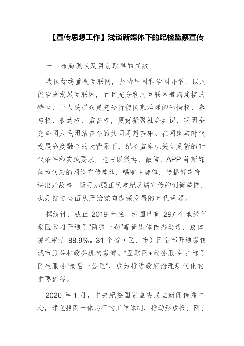/ 【宣传思想工作】浅谈新媒体下的纪检监察宣传
