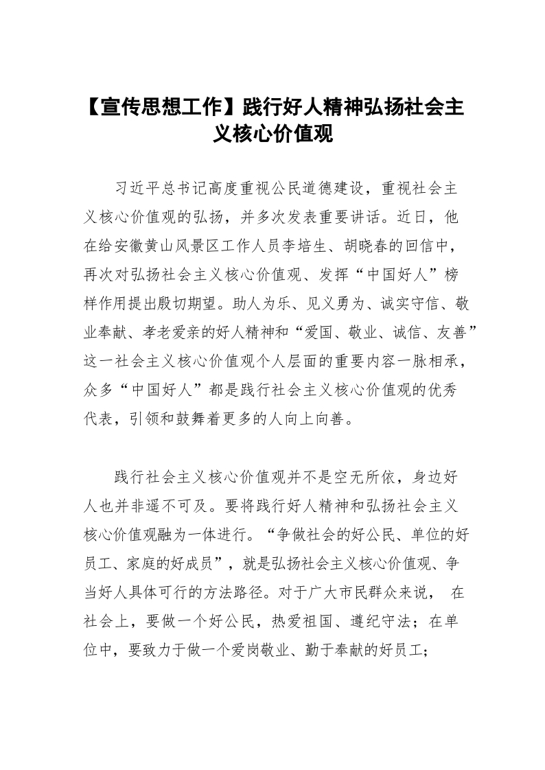 / 【宣传思想工作】践行好人精神弘扬社会主义核心价值观