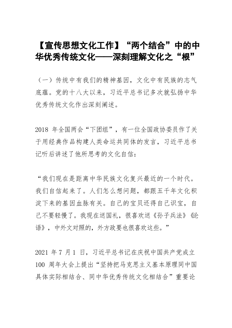 / 【宣传思想文化工作】“两个结合”中的中华优秀传统文化——深刻理解文化之“根”