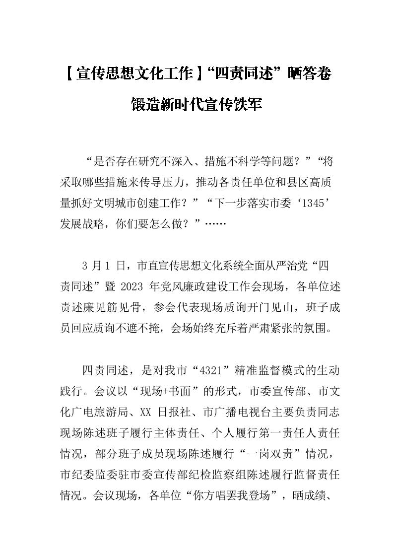 / 【宣传思想文化工作】“四责同述”晒答卷 锻造新时代宣传铁军
