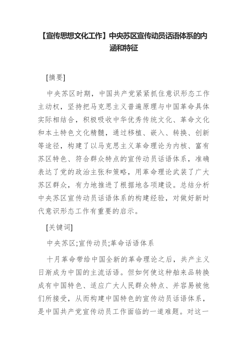/ 【宣传思想文化工作】中央苏区宣传动员话语体系的内涵和特征