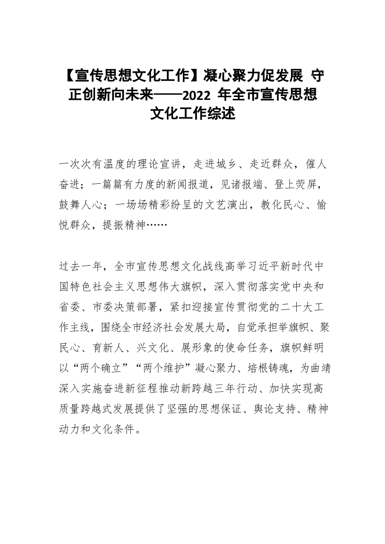 / 【宣传思想文化工作】凝心聚力促发展 守正创新向未来——2022年全市宣传思想文化工作综述