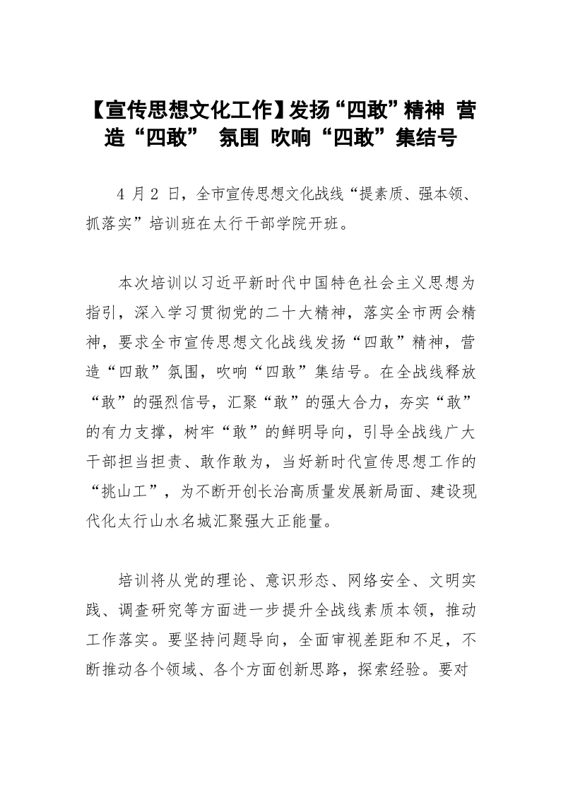 / 【宣传思想文化工作】发扬“四敢”精神 营造“四敢” 氛围 吹响“四敢”集结号