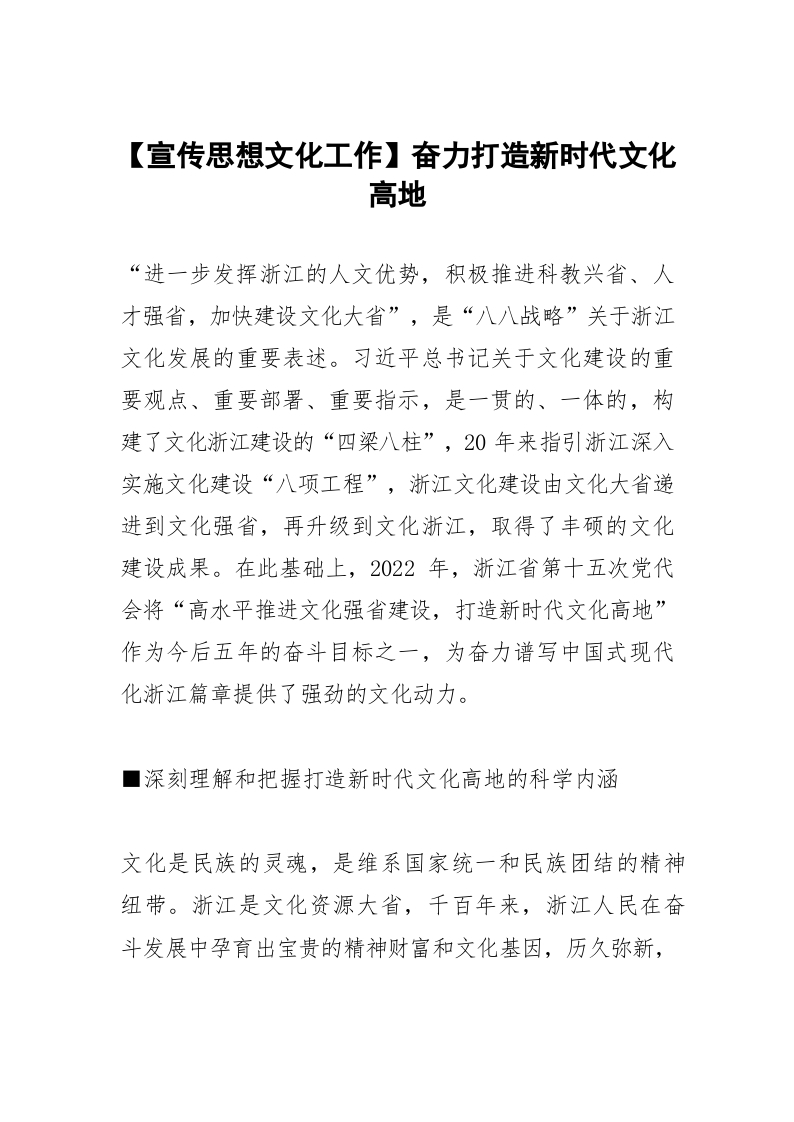 / 【宣传思想文化工作】奋力打造新时代文化高地