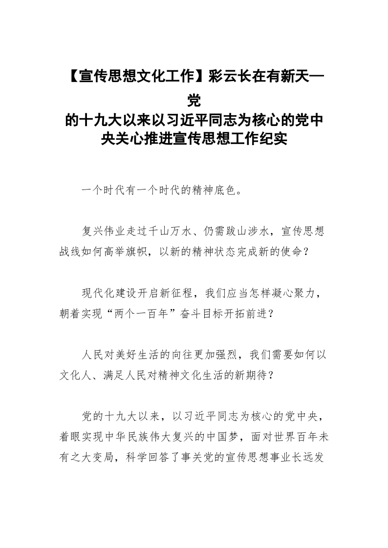 / 【宣传思想文化工作】彩云长在有新天—党的十九大以来以习近平同志为核心的党中央关心推进宣传思想工作纪实