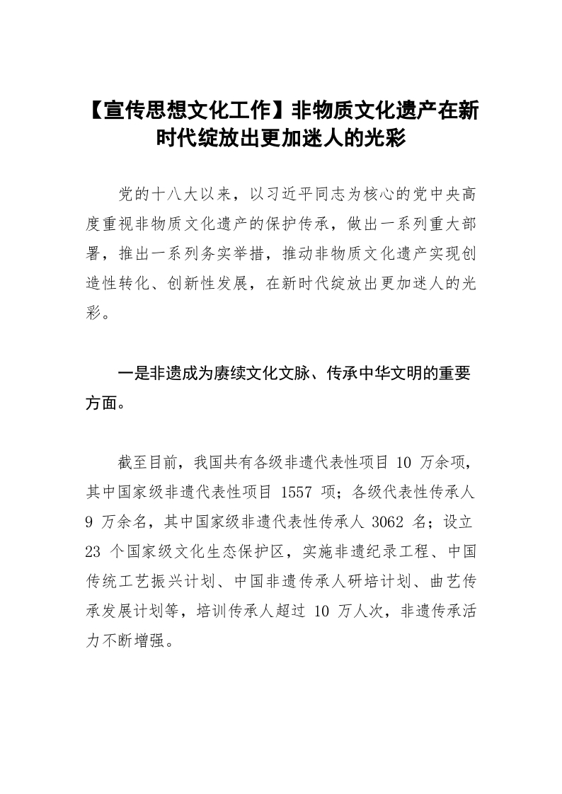 / 【宣传思想文化工作】非物质文化遗产在新时代绽放出更加迷人的光彩
