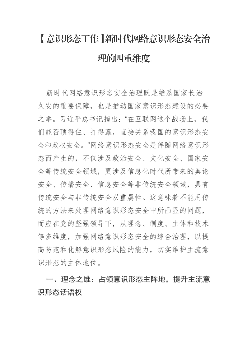 / 【意识形态工作】新时代网络意识形态安全治理的四重维度