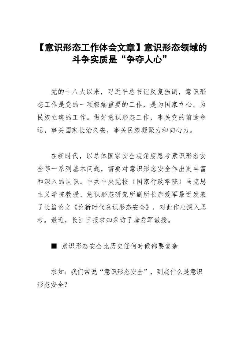 【意识形态工作体会文章】意识形态领域的斗争实质是“争夺人心”