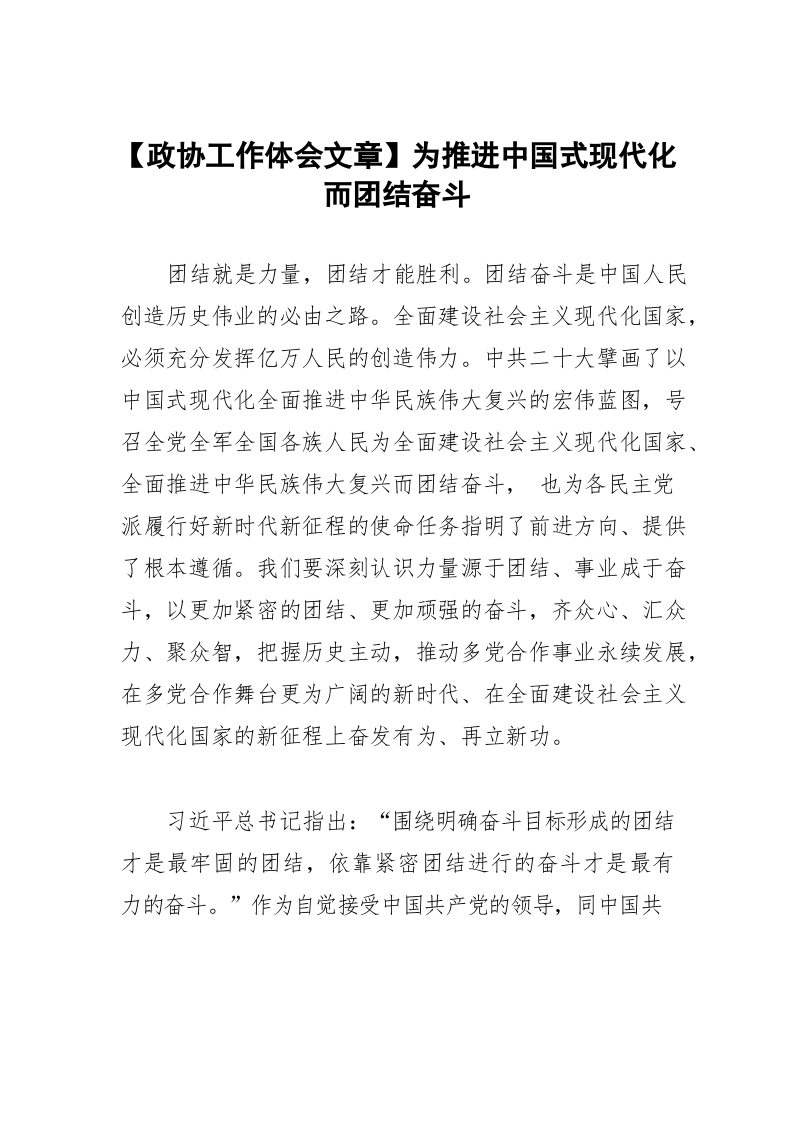 / 【政协工作体会文章】为推进中国式现代化而团结奋斗