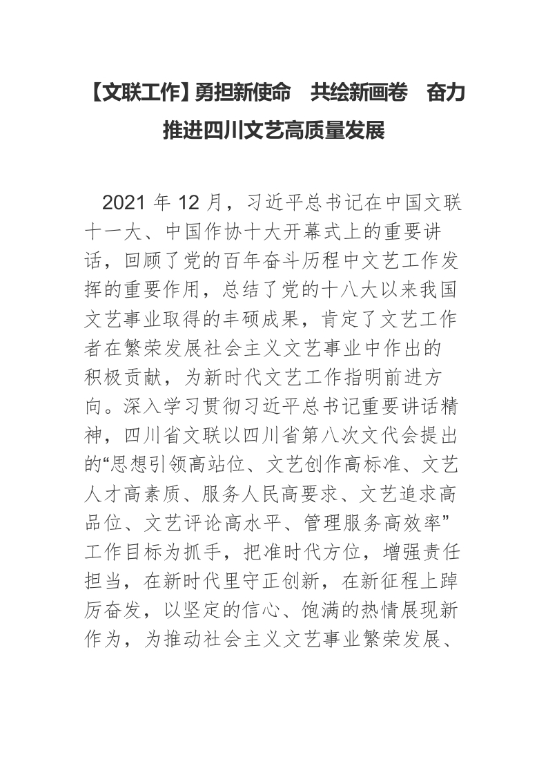 / 【文联工作】勇担新使命 共绘新画卷 奋力推进四川文艺高质量发展