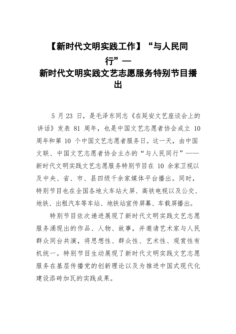/ 【新时代文明实践工作】“与人民同行”—新时代文明实践文艺志愿服务特别节目播出