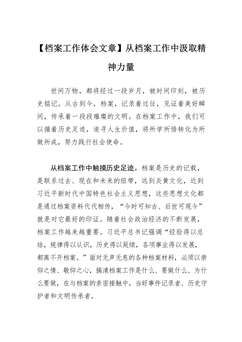 / 【档案工作体会文章】从档案工作中汲取精神力量