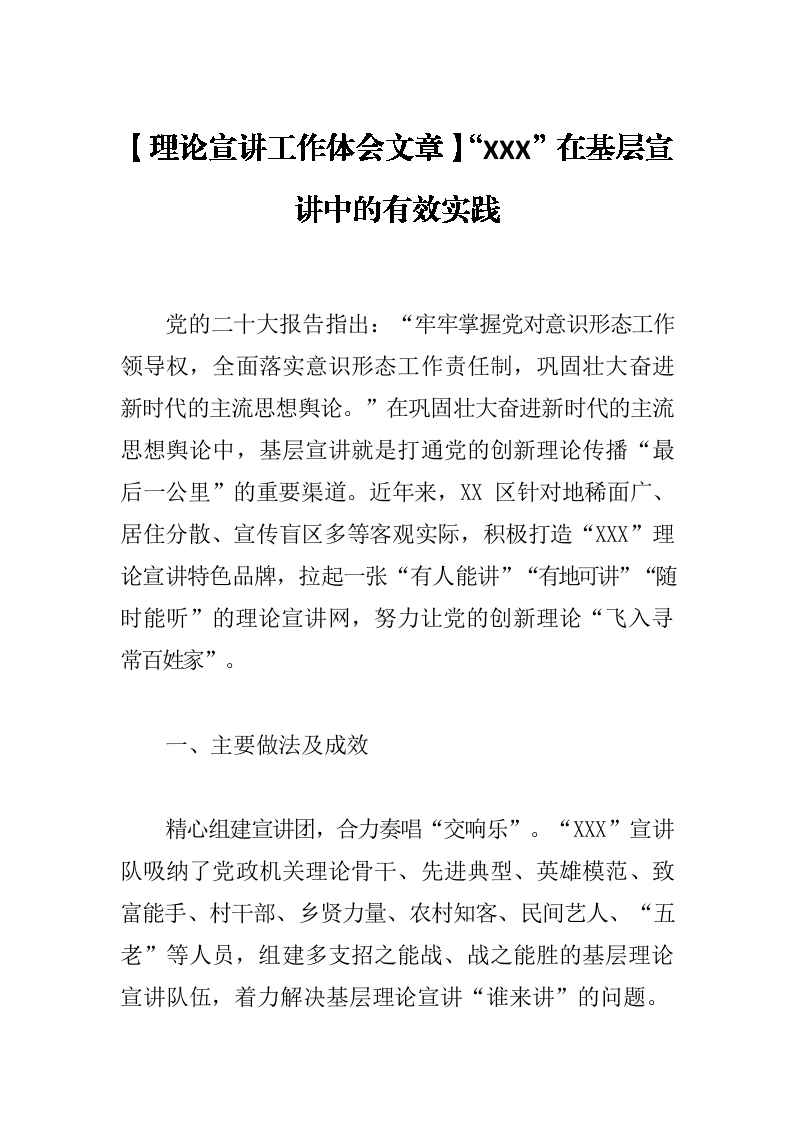 / 【理论宣讲工作体会文章】“XXX”在基层宣讲中的有效实践