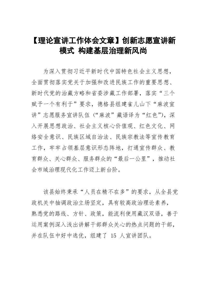 【理论宣讲工作体会文章】创新志愿宣讲新模式 构建基层治理新风尚